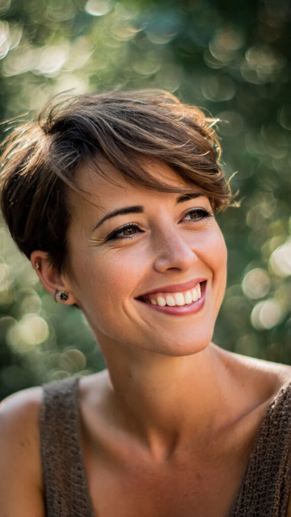 Le pixie cut reste une référence absolue parmi les coupes courtes modernes. En 2026, il gagne en douceur. On lui ajoute de la longueur sur le dessus, une mèche sur le côté ou une frange légère. Le résultat ? Plus de mouvement, plus de féminité, sans perdre l’audace qui fait sa signature.